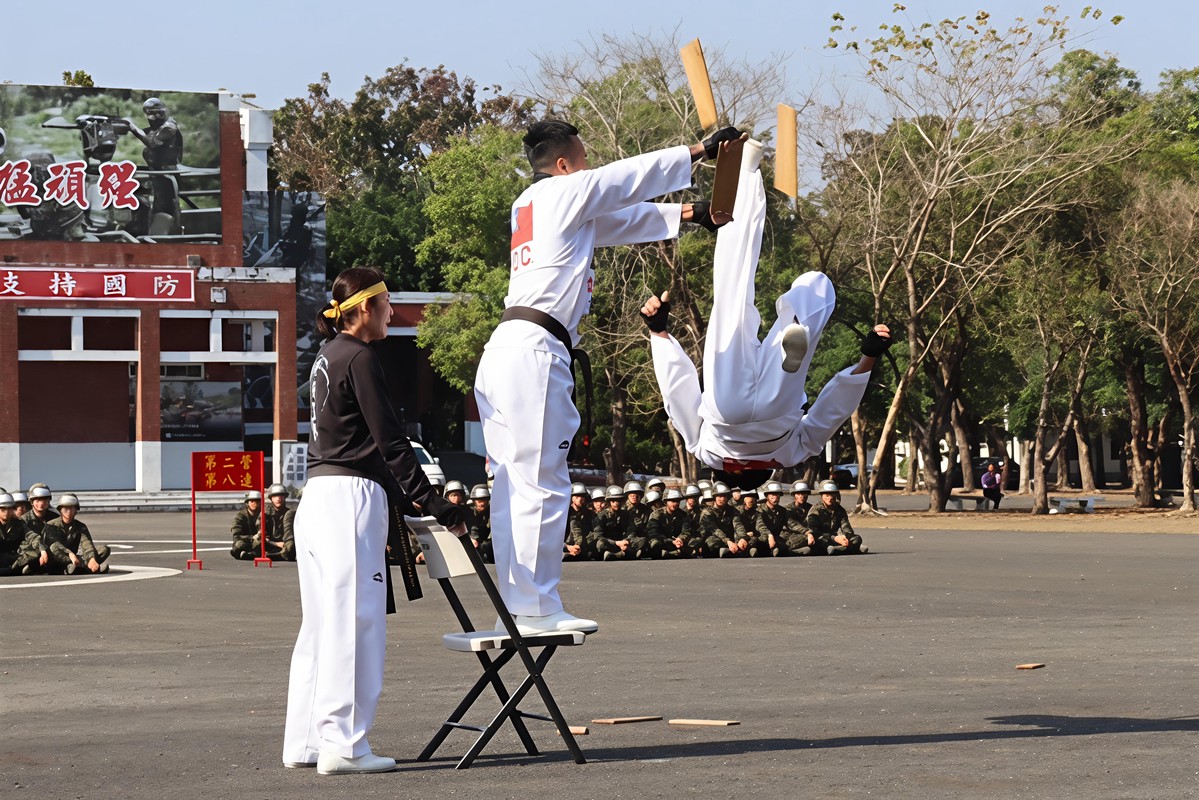 為增添活動亮點,單位特別安排陸戰隊儀隊及莒拳隊進行操演,整齊俐落的動作與精采演出,展現海軍陸戰隊精實戰力與團隊精神,獲得現場家屬與來賓熱烈掌聲。隨後舉行家屬懇親會,透過單位介紹與形象影片播放,讓家屬更加了解子弟在營中的生活與訓練環境,也促進幹部與家屬之間的交流與信任。活動同時結合志願役招募宣導,鼓勵青年投入軍旅行列,共同守護國家安全。