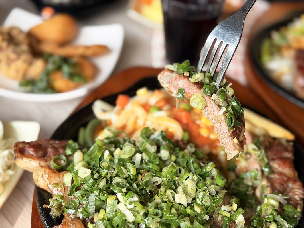 ⦁ 暴量香蔥:嚴選優質青蔥,富含蔥素(Alliin)與維生素 C,有助於維持免疫力 。當滿滿的青蔥撒在滾燙的鐵板上,辛香味瞬間被高溫激發,與多汁肉排交織出經典台式層次 。