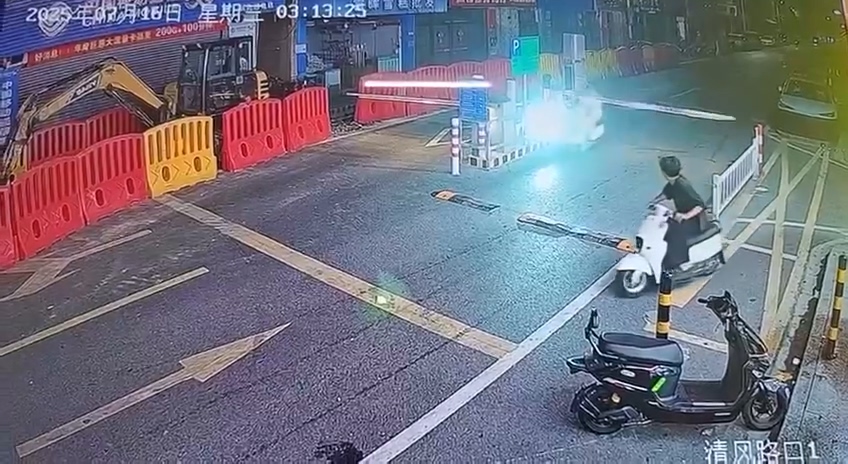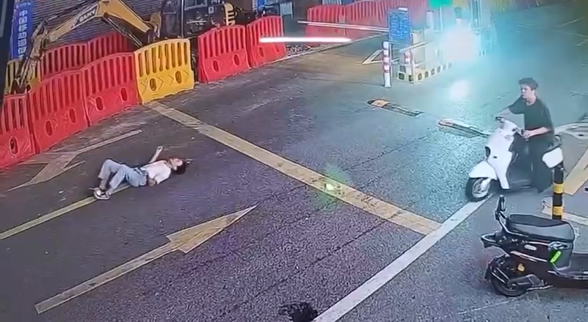 根據外媒報導,16日中國廣東佛山發生車禍事故,一名男子騎電動機車沒戴安全帽,高速行駛在馬路上,疑似沒有看到前方有柵欄,衝過去時直接被迎面擊倒,瞬間人車分離倒在地上。