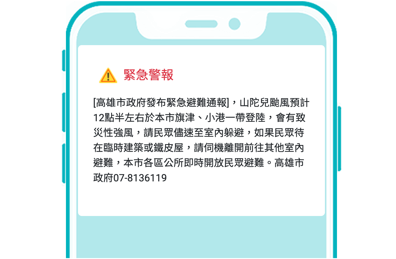 高雄市政府,今(3日)中午12時許,發布緊急避難通報表示,山陀兒颱風預計12點半左右於本市旗津、小港一帶登陸,會有致災性強風,請民眾儘速至室內躲避,如果民眾待在臨時建築或鐵皮屋,請伺機離開前往其他室內避難,本市各區公所即時開放民眾避難。