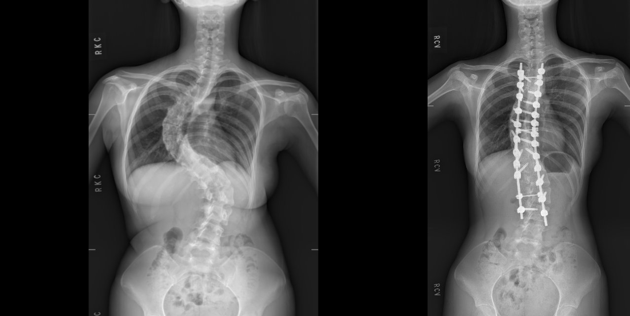 「我不知道自己的脊椎側彎這麼嚴重!」黃同學說,背痛急性發作時,她連呼吸都痛,睡覺躺平也痛,動彈不得,醫師建議要手術治療,可是她擔憂會影響課業,也煩惱醫療費用,幸獲得高中老師協助向外愛心募款,規劃2年、高中畢業前順利在台手術。「手術後第一次站起來,看東西都變小了,還以為自己頭暈,結果是脊椎截彎取直,長高了8公分!腰也直了!背部傷口更只有細細一條線。」讓親朋好友無法置信的是,橫跨胸、腰椎十餘節的高難度脊椎手術,黃同學不僅沒有癱瘓,竟只住院6天就順利出院,還能穿上修身的衣服、剪短髮,繼續在台灣快樂地讀大學。