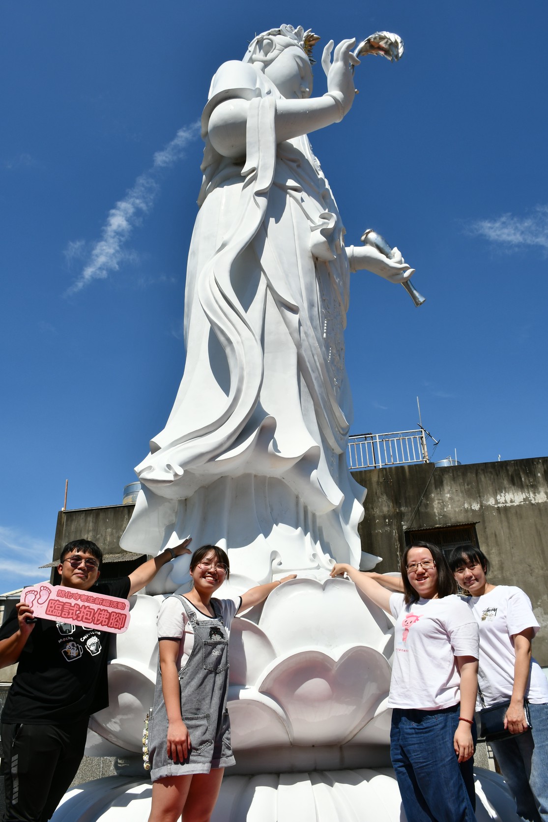 圖片說明:市公所寺廟室首度開放8公尺高的觀音像,讓考生們能「臨時抱佛腳」考運享通