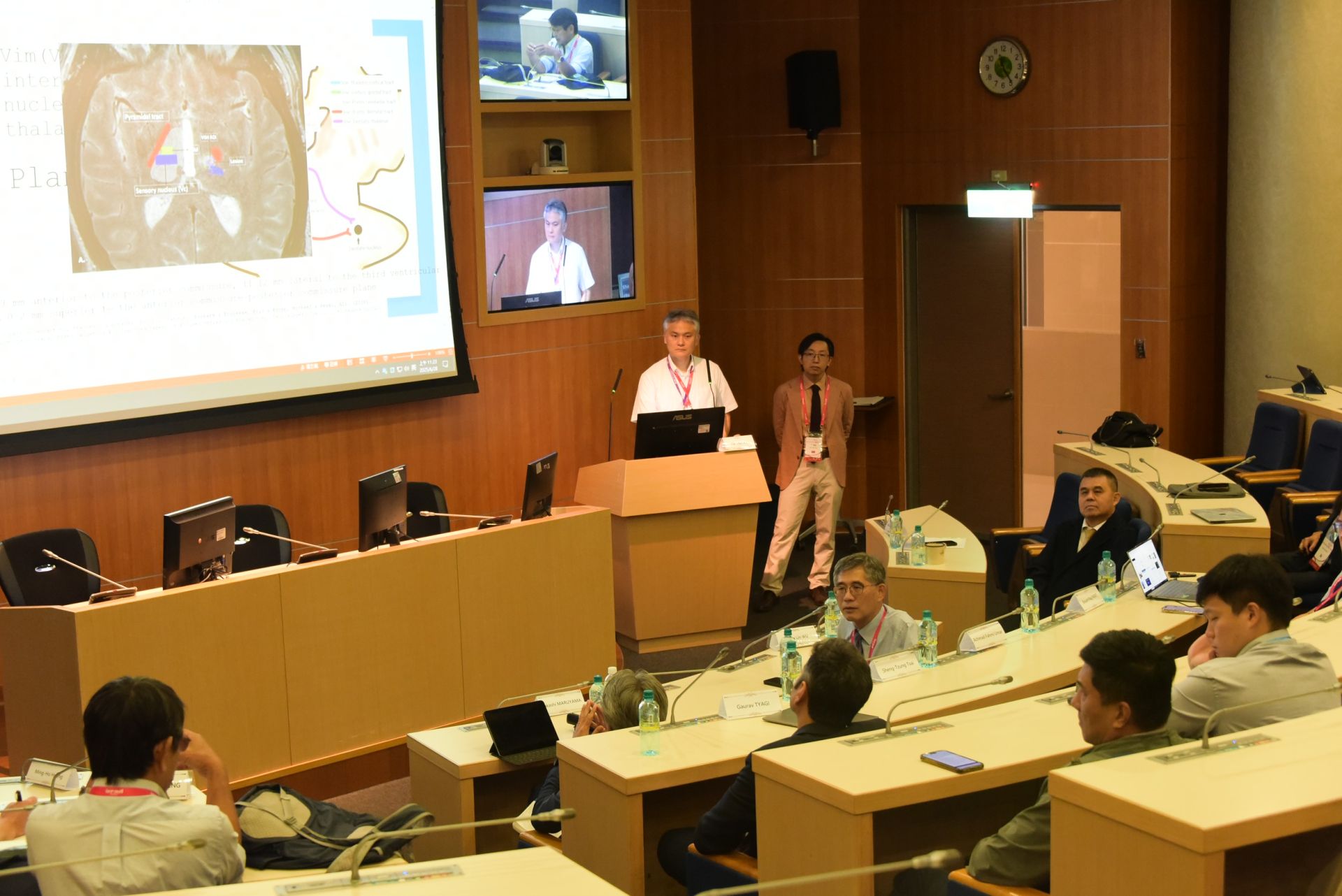 彰濱秀傳神經外科張維傑主任表示,此次會議的亮點之一,是由醫療團隊現場進行「清醒狀態下射頻熱凝手術」的實境操作,治療顫抖症病人。此類手術的病人在局部麻醉下清醒配合,醫師可即時測試神經反應並調整手術設定,讓與會醫師親眼見證神經功能即時回饋,對臨床操作極具教育價值。