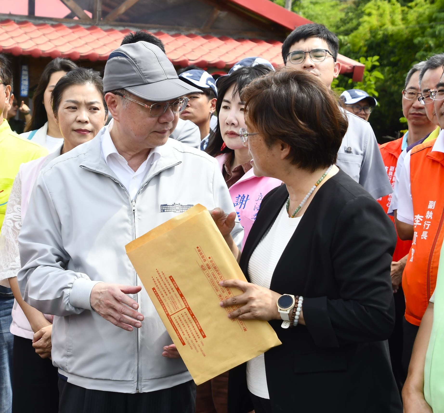 圖說:卓榮泰到芬園視察,彰縣長王惠美趁機向卓揆爭取彰縣農業、水利等重要工程經費補助