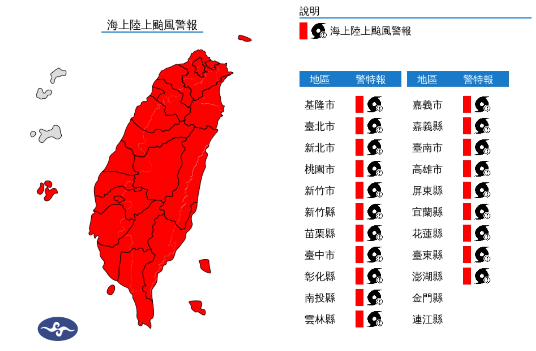 ▲海上陸上颱風警報。(圖/翻攝自中央氣象署)