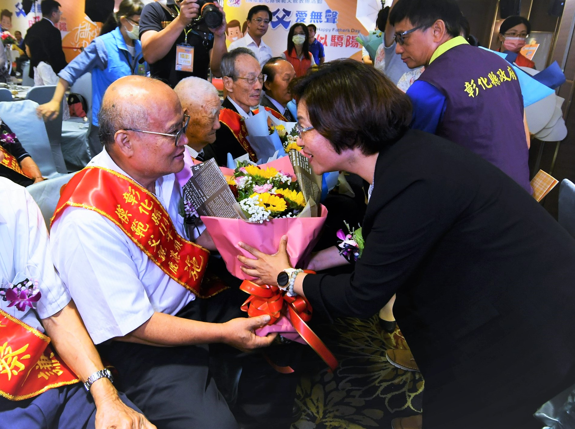 彰化縣政府8月2日於花壇鄉全國麗園大飯店隆重舉辦「114年度模範父親表揚大會」,以「父愛無聲‧暖似驕陽」為主題,由縣長王惠美親自頒獎。王惠美說,每位模範父親背後都有非常感人的故事,「爸爸親像山」,是兒女的靠山,父親感情比較內斂,比較不善用語言來表達感情,但他們卻是默默地支持著這個家庭、默默地為家庭付出,為人子女的不只是父親節要孝順爸爸,平時都要多關心爸爸,「愛要及時,孝順也要及時」。