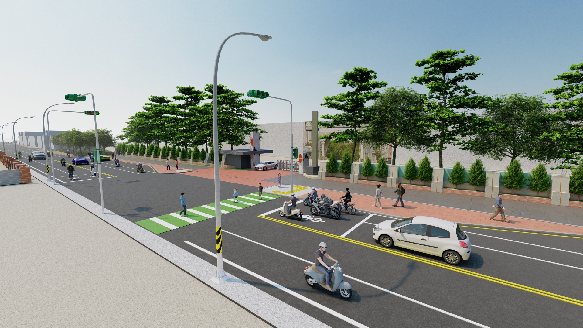 王惠美表示,這段工程自美寮路二段357號附近(美寮夜市)開始,沿美寮路向東延伸,途經彰11線(柑竹路)、縣道135線東路,至終點彰新路三段,總長度約2,326公尺,設計上將路幅拓寬至13公尺,並導入汽、機車分流規劃,有效提升通行效率並降低事故風險。考量沿線學校通行安全,特別規劃設置通學步道,全長達860公尺,並針對瓶頸地段進行線形與視距優化,全面提升道路安全性與舒適性。
