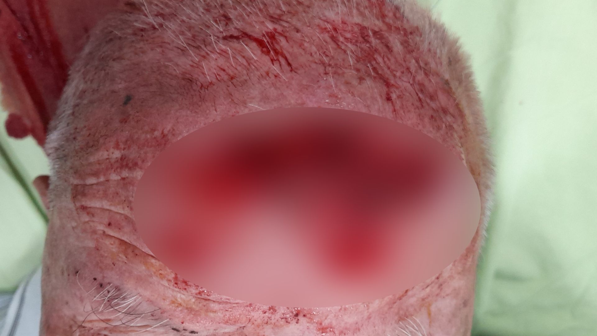 李綜合醫院總院長、神經外科主治醫師李旭東表示,該患者自述,在家中騎樓牽機車時摔倒,頭部當場著地,流了很多血,被救護車送到醫院急診,清洗傷口後,發現有一個4公分及一個1公分的撕裂傷,右膝蓋也擦傷,頭部縫了10多針,由於撞擊力道很大,進一步檢查確認顱內右額葉腦輕微出血,馬上安排住院治療。
