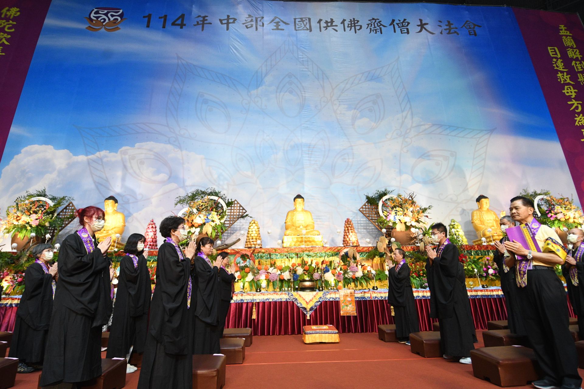 中部全國供佛齋僧大會總幹事林國華感謝諸山長老、法師慈悲應供,也感謝所有護法大德,廣植福田、共襄盛舉。在農曆七月「行孝報恩」的季節裡,淨化人心,找回共同記憶,除祈福之外,也緬懷先人、淨化人心。指導法師淨旭長老也感謝王縣長全力支持,才能每年在彰化縣立體育館順利舉辦供佛齋僧大會。