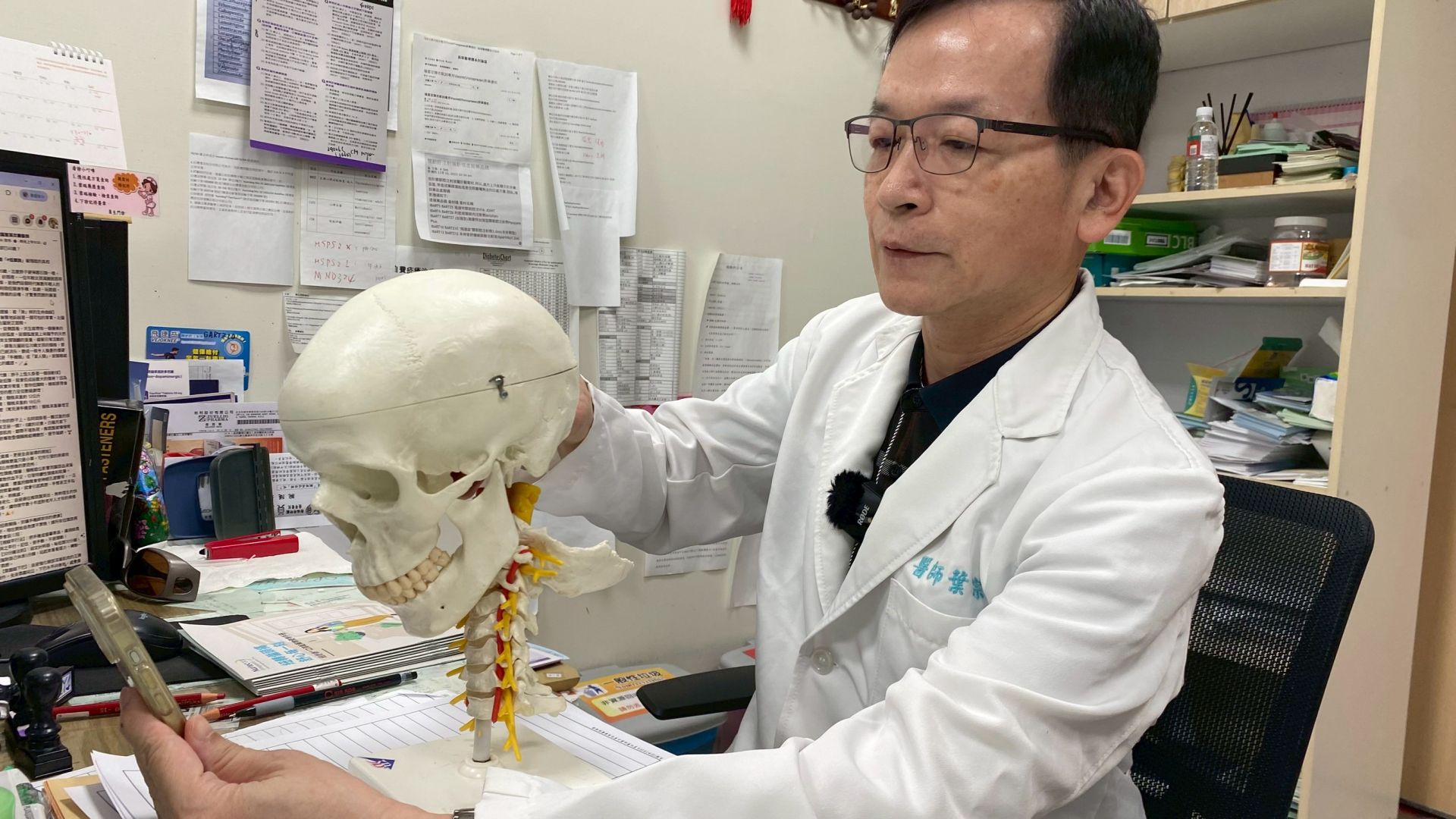 葉醫師提醒,現代人幾乎天天離不開手機,但可以透過正確習減少傷害,一是視線平行法,將手機、電腦螢幕抬高至與視線平行,避免長時間低頭;二是30分鐘法則,每低頭30分鐘就休息5分鐘,站起來活動肩頸並望向遠方;三是靠牆縮下巴,全身靠牆站立,下巴水平向後收,讓後腦勺輕貼牆面,維持10秒,重複數次,可強化頸部深層肌肉。而若出現長期頭痛、脖子痠痛或手麻症狀,應及早就醫檢查,避免頸椎加速退化。