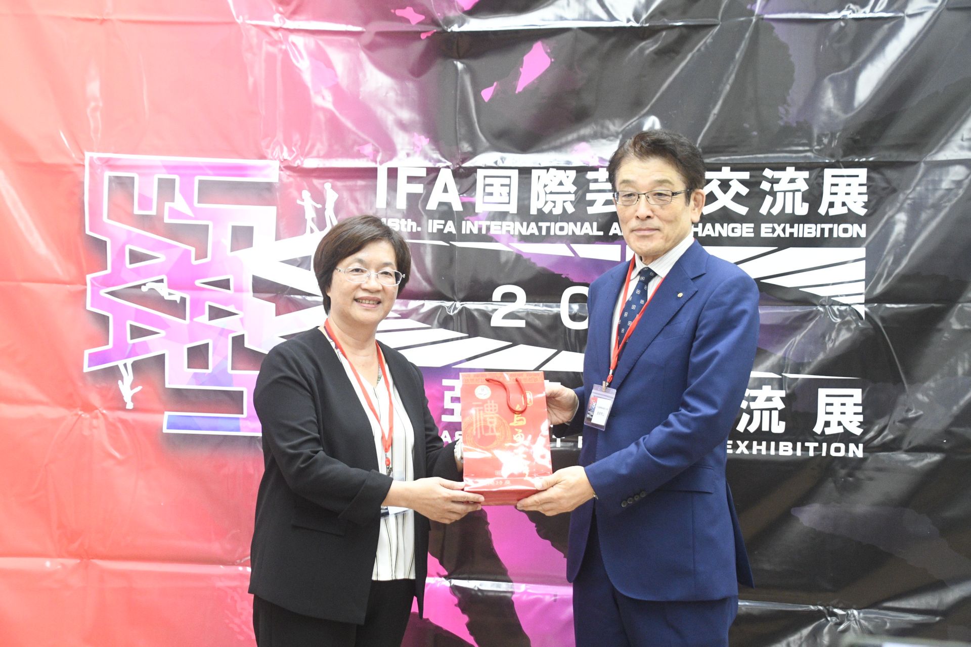 圖說:王惠美將彰縣藝術家的作品冊集贈給日本IFA國際美術協會會長金原芳山
