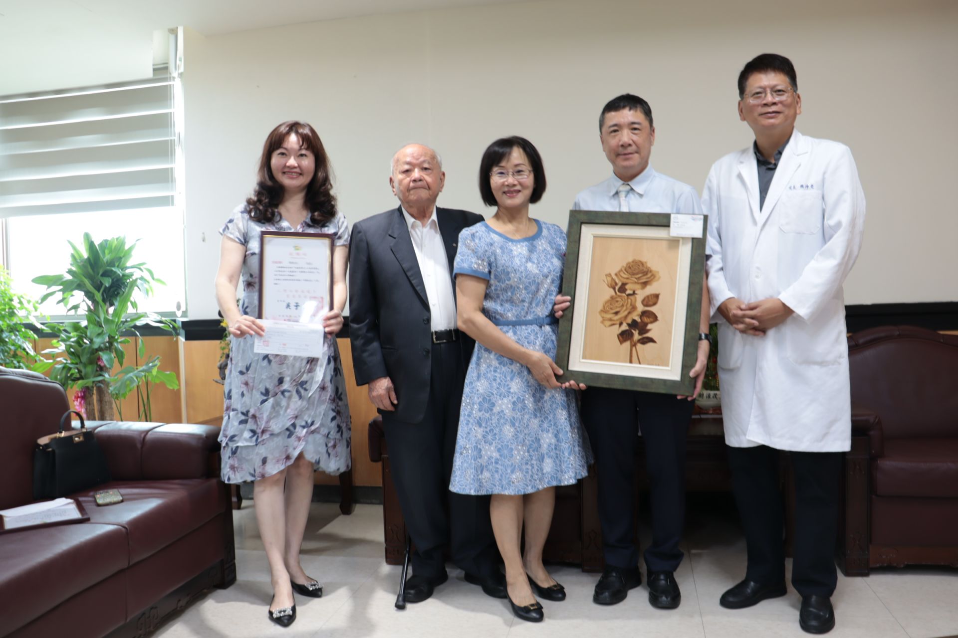 衛福部彰化醫院舉行「烙畫有情。仁心無界」烙畫聯展,周宗立先生的妻子看上「多情玫瑰」的畫作,周宗立想送給妻子;另外,邱伯達先生喜歡「初心」的作品,希望捐給彰化醫院。這2幅畫作同為林佩慧所畫,她願意割愛,同時將所得4萬8千元捐給喜願家園,他們今天聚在彰化醫院,舉行簡單的捐贈,一起循環愛的力量。