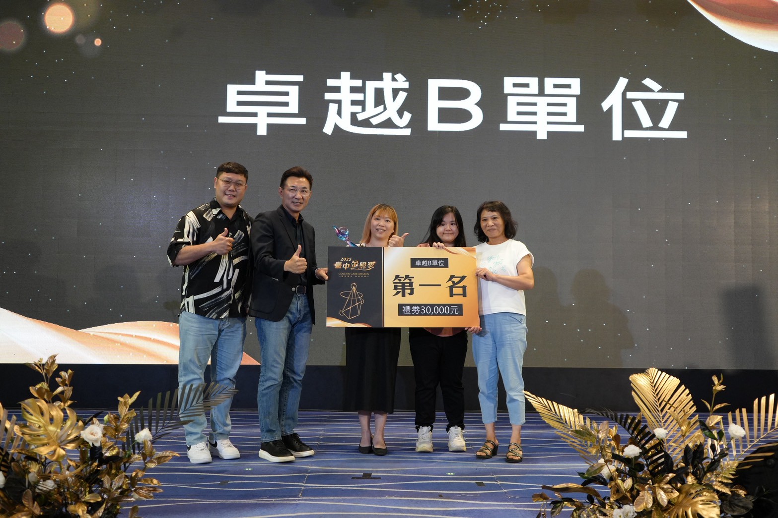 衛生局說明,此屆活動主視覺結合金色與黑色的配色,營造出高貴典雅的氛圍,展現長照服務的專業與安心形象,由台中市政府衛生局長曾梓展帶領入圍者尊榮入場,象徵台中市長照服務是一個專業、自信、堅強且幸福的大家庭。