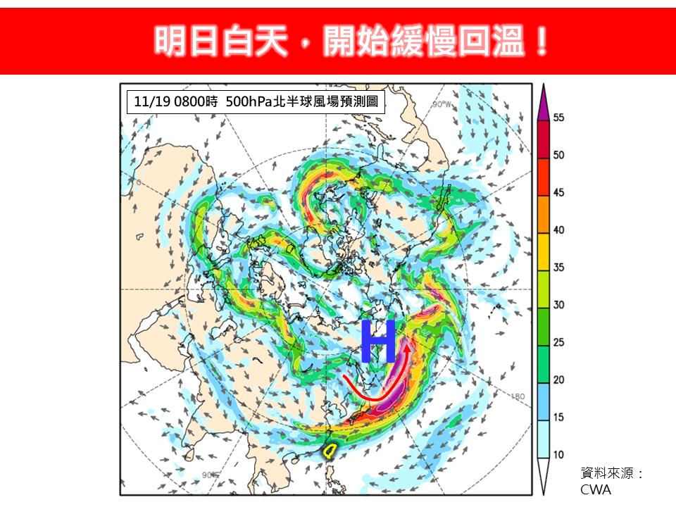 白天方面,北台灣回溫速度不算明顯,高溫大約停在16到18度之間,溼冷感還是存在。中南部表現就相對友善一些,氣溫可望回升到20度以上,南部高溫甚至有機會來到25到27度,南北溫差拉開到10度以上,早出晚歸的民眾務必注意衣物調整。