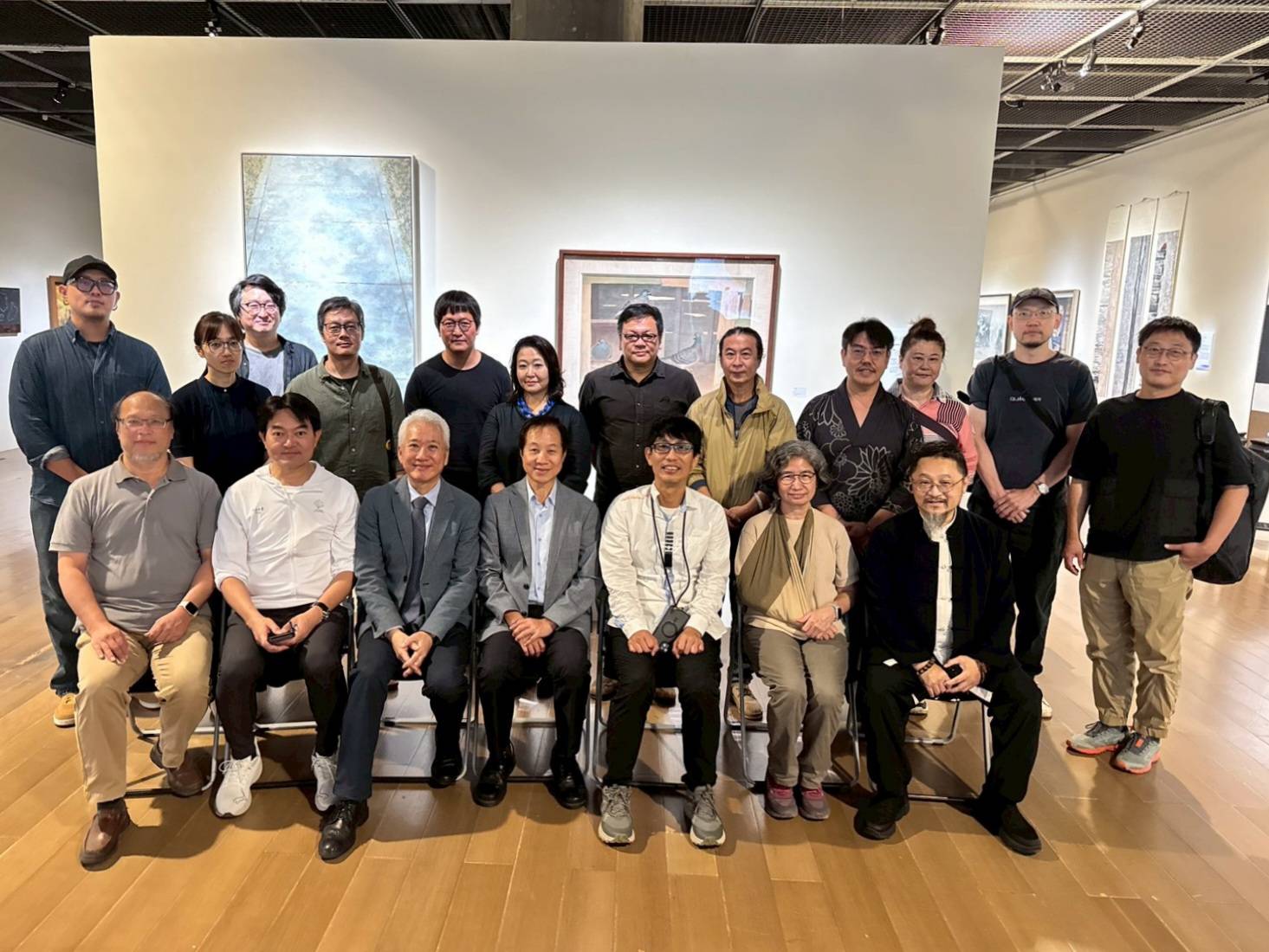 東海大學張國恩校長(前排左四)率學校高層主管與美術系參展教師合影.(圖/東海大學藝術中心 提供)