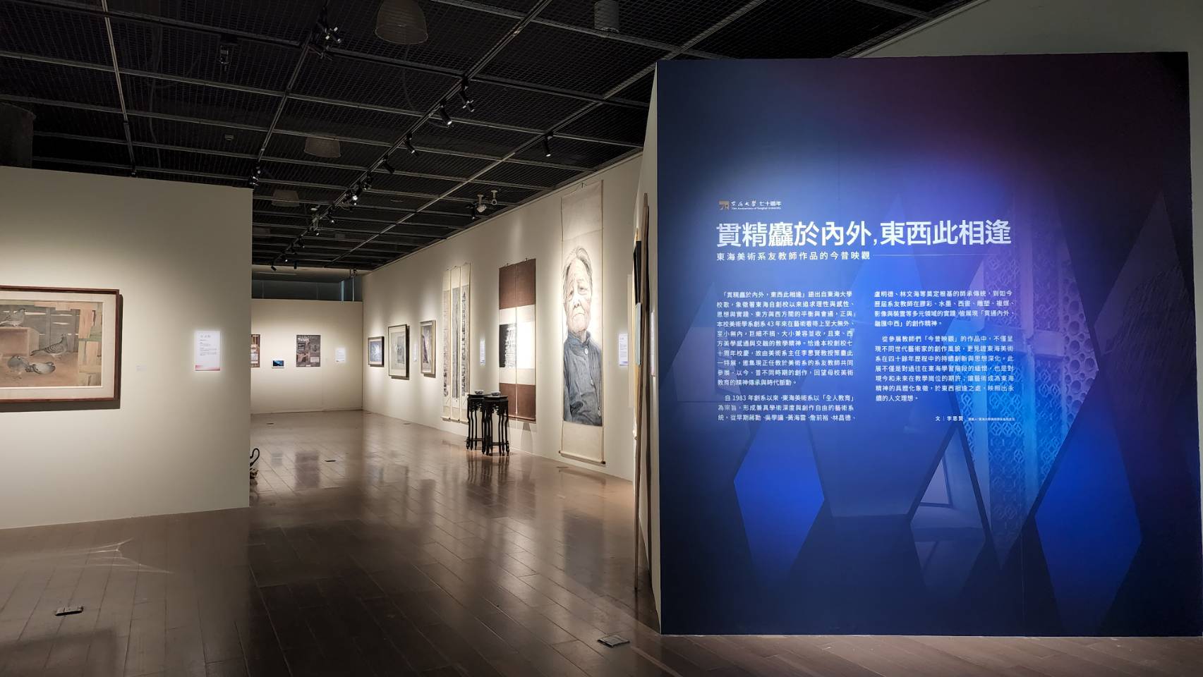 東海大學藝術中心《貫精麤於內外,東西此相逢:東海美術系友教師作品的今昔映觀》展場一隅.(圖/東海大學藝術中心 提供)