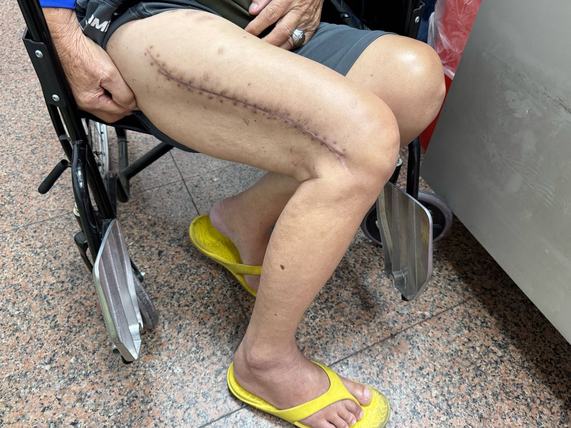 「術後能再站起來的感覺,真的很棒!」王姓老翁說,他擔任環保志工已經20多年,後來接任隊長,4年多前協助公所分送防疫物資給志工隊員時,途中遇車禍被撞傷,造成粉碎性骨折,大腿也斷成三截,開刀治療後,沒想到大腿中鋼板、鋼釘卻鬆開,讓他又痛到無法行走,只好再到醫院求助。