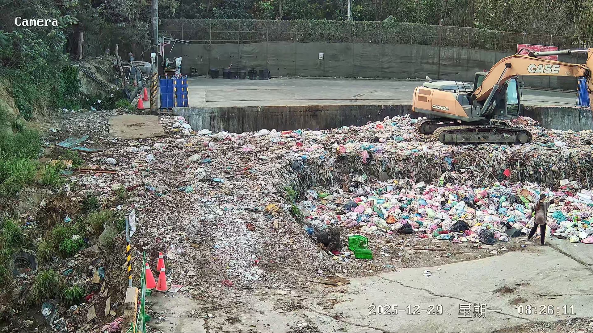 圖說:彰市清潔隊動用機具及人力在垃圾堆裡尋找民眾丟棄的枕頭 順利找回10萬元現金
