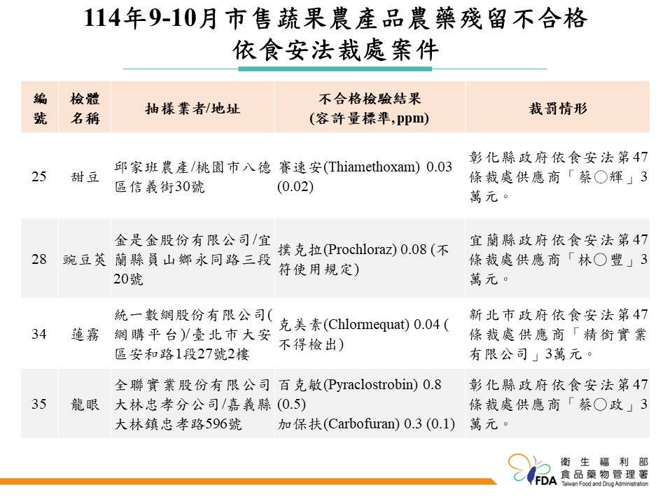【Lai傳媒、記者爆料網/謝建成/台北報導】年末聚餐旺季來臨,大家外食頻率飆高,但吃進嘴裡的蔬果是否安全?衛福部食藥署今(31)日公布「114年度市售蔬果農藥殘留監測」9~10月結果,檢驗超過800件市售蔬果,竟有45件農藥殘留不合格,多家知名餐廳、飲料店、量販賣場全都中鏢,引發民眾關注。