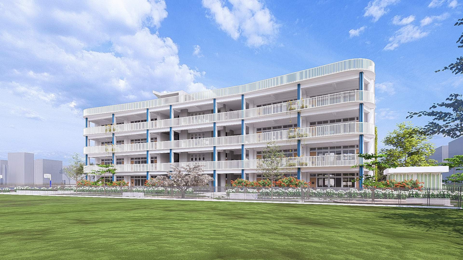 王惠美指出,本工程由縣府全額支出,教學大樓設計融合『植物葉脈』的生命意象,建築線條如同自然律動般延伸,強調校園空間與自然的和諧共生,致力於構建通風、採光佳且具空間層次的學習環境,並融合空間美學概念。此外,縣府預計再投入3億9,835萬元進行第三期工程興建操場與地下停車場,以紓解上下學尖峰車流與居民停車壓力,提升家長接送的安全與便利性,達成校園與社區雙贏的局面。