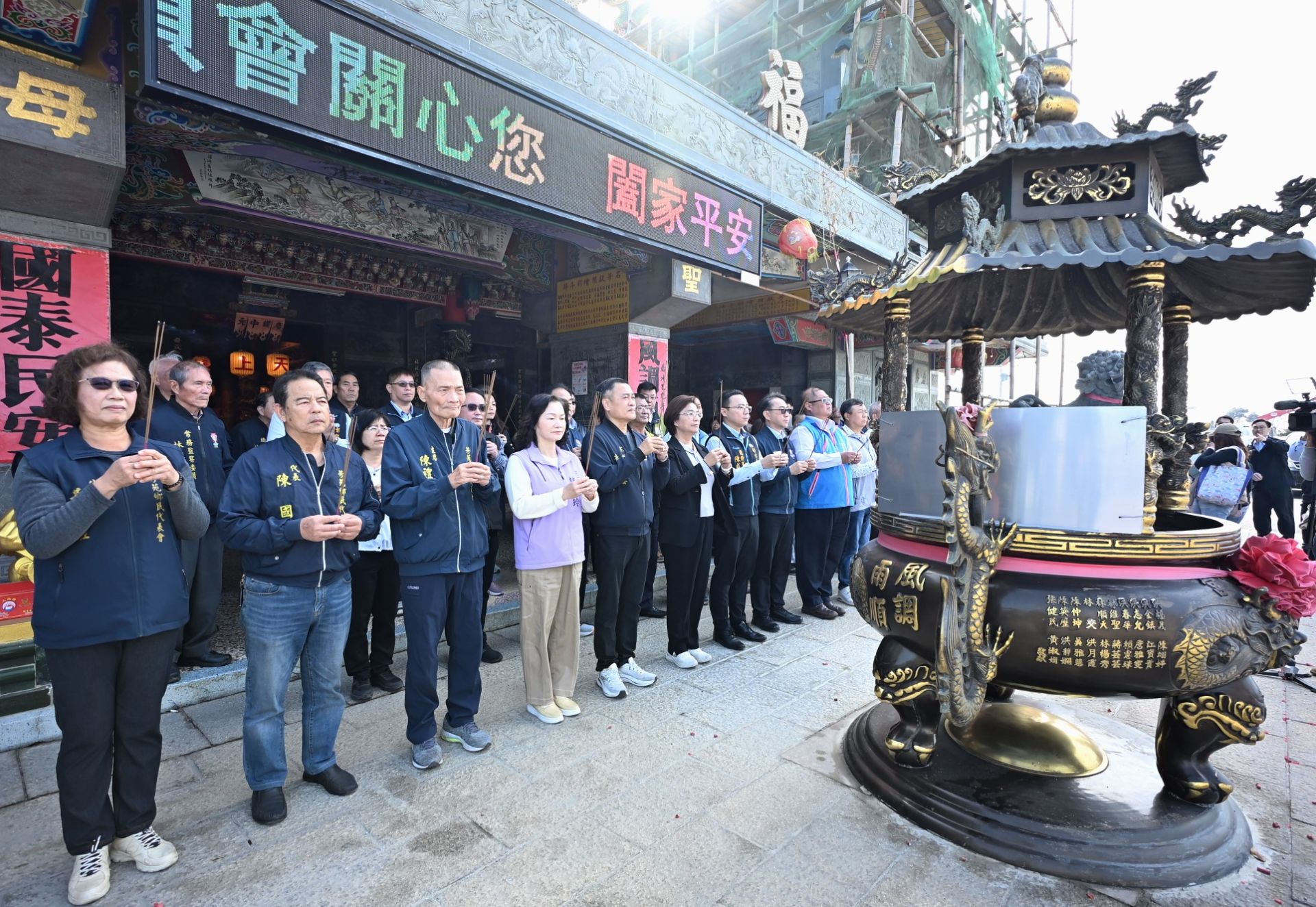 圖說:王惠美率福海宮執事們一起舉香拜天公,祈求國泰民安
