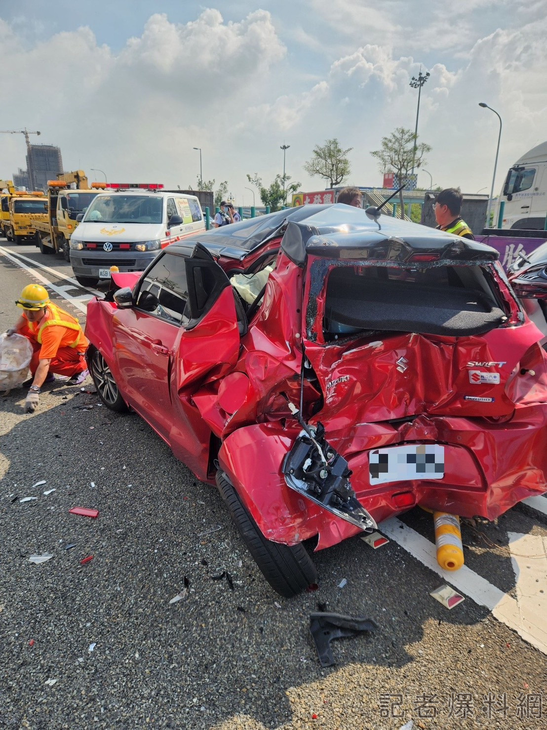 【記者爆料網 王俊勝/高雄報導】高雄市今(9)上午8時55分許,南向373公里漁港高架段驚傳車禍意外,胡男(43歲)駕駛自用小貨車,疑似未注意車前狀況,撞擊前方停等由王女(31歲)及田男(65歲)駕駛的2部自小客車,田男車輛再往前推撞王男(33歲)自小客車後車尾而肇事,現場一度交通打結。