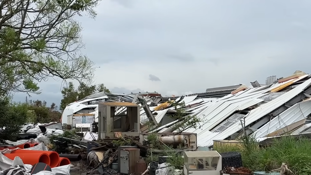 ▲起重機吊塔墜落。(翻攝畫面)
