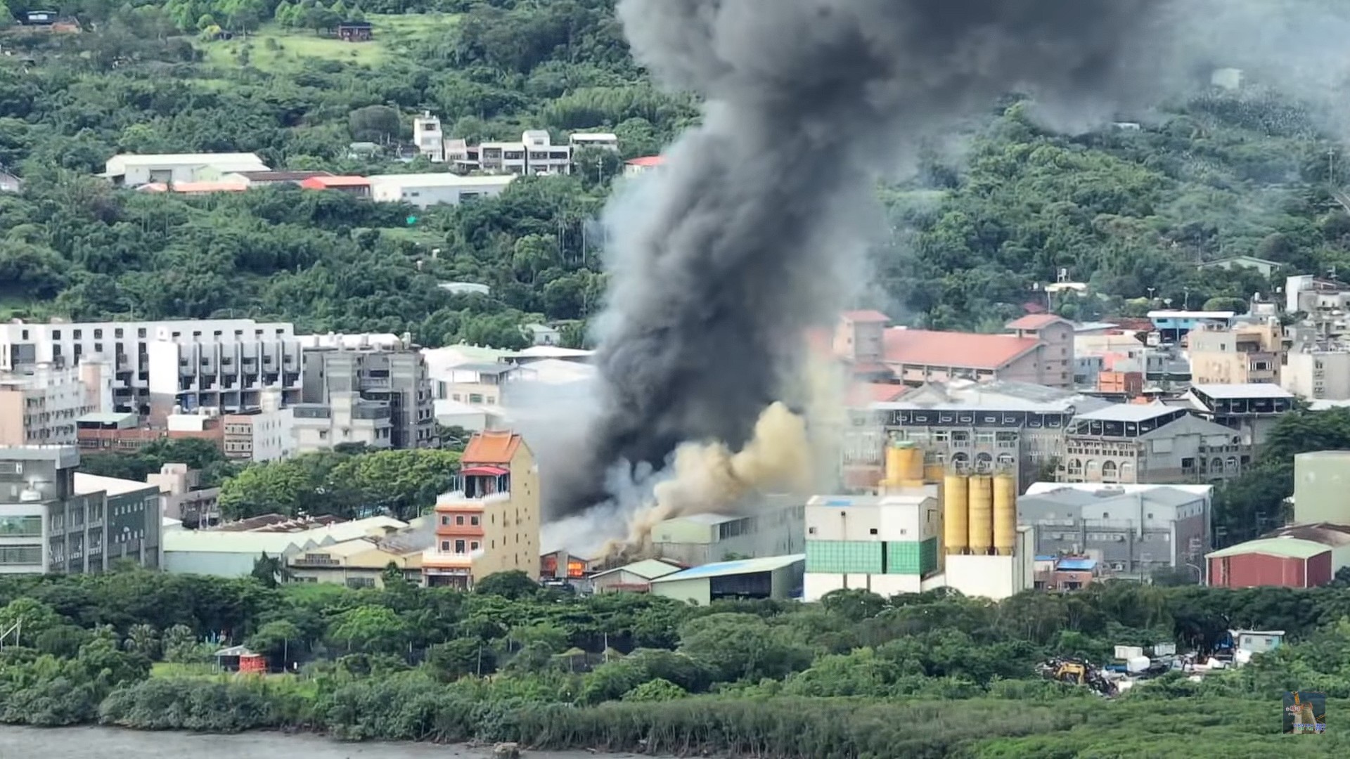八里工廠清晨突發大火 濃煙竄天嚇壞居民 所幸無人傷亡.(圖片翻攝 洪孟楷 臉書)