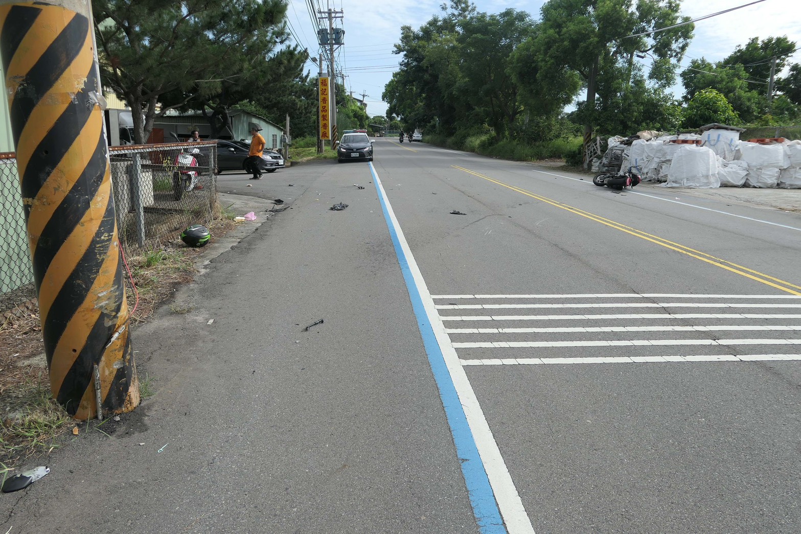 【賴傳媒、記者爆料網/周庭慶/台中報導】台中市沙鹿區今(18)日發生死亡車禍!1輛逆向行駛的大型重機與1輛欲左轉的機車擦撞後,再衝撞路旁電線桿,造成大型機車騎士頭部及四肢重創送不治,全案清水分局調查偵辦中。