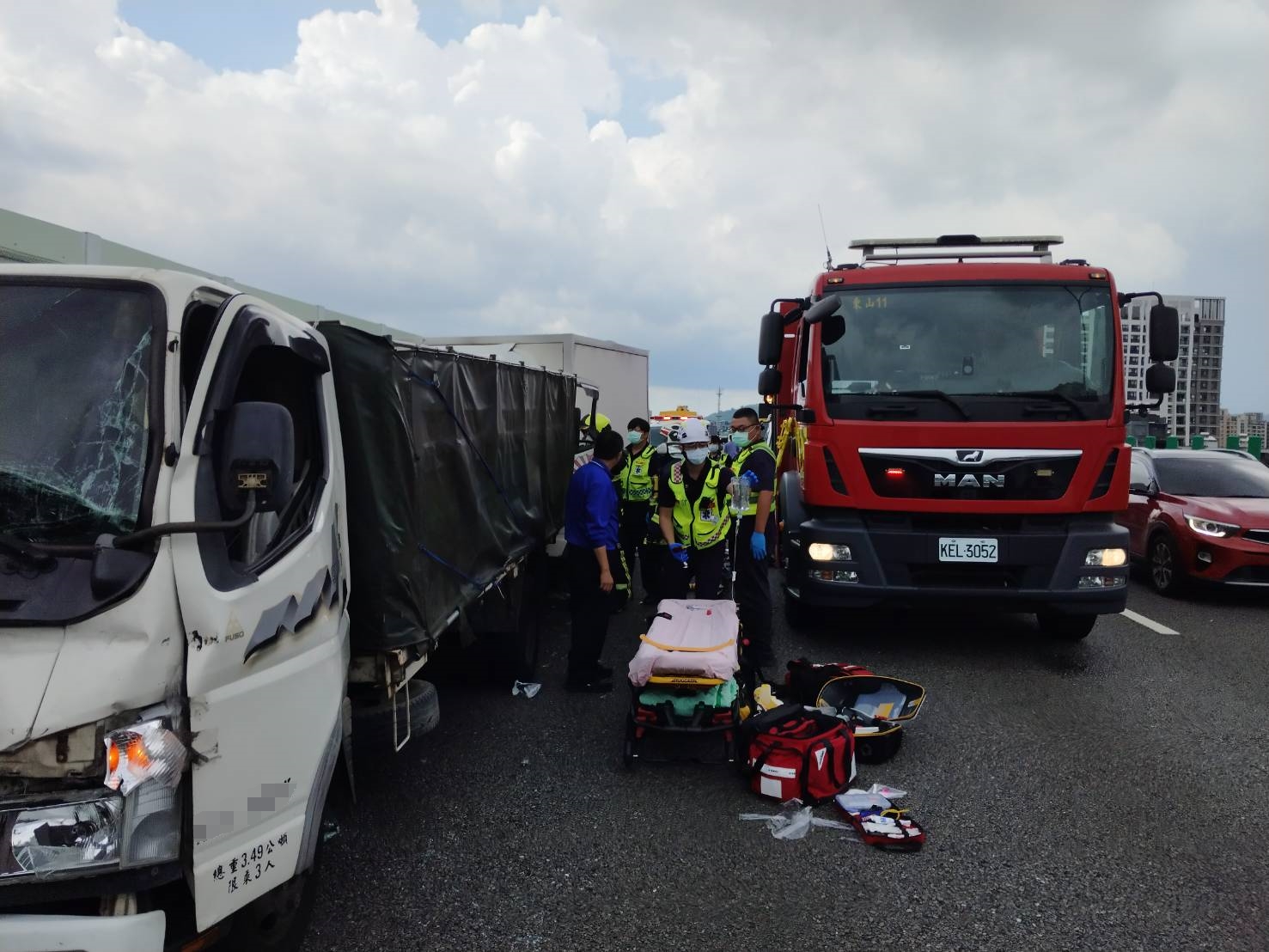 消防隊員到場發現為3輛貨車追撞事故,傷患共有3人,1名25歲男子受困小貨車內經搶救脫困發現OHCA,由中山分隊送往中國附醫。另有30多歲男子(另輛貨車駕駛)、意識清楚、擦傷,該貨車內另1名年約30多歲男乘客意識清楚、擦傷,均由東英分隊送往長安醫院,後續由員警調查處理。