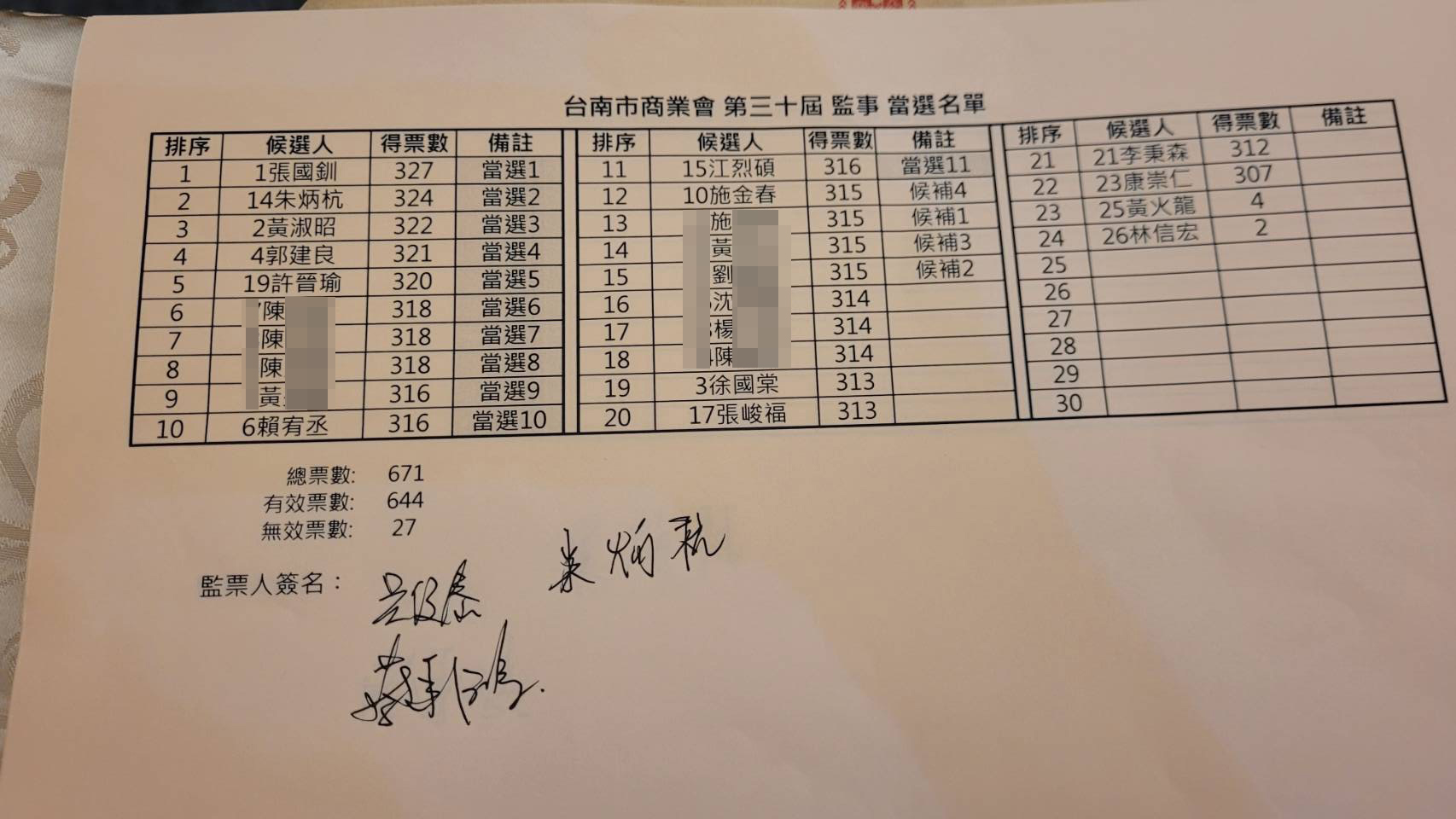 ▲監事名單當選監事及事後檔選人票數差距相當近,讓從當選變落選的監事怒告(圖/民眾提供)