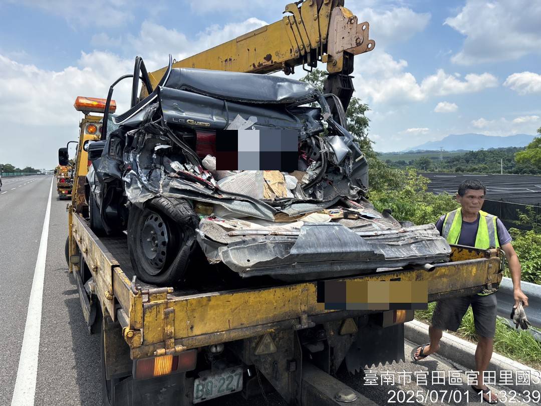 國道3號自小客車遭砂石車追撞! 車尾撞爛駕駛乘客受傷