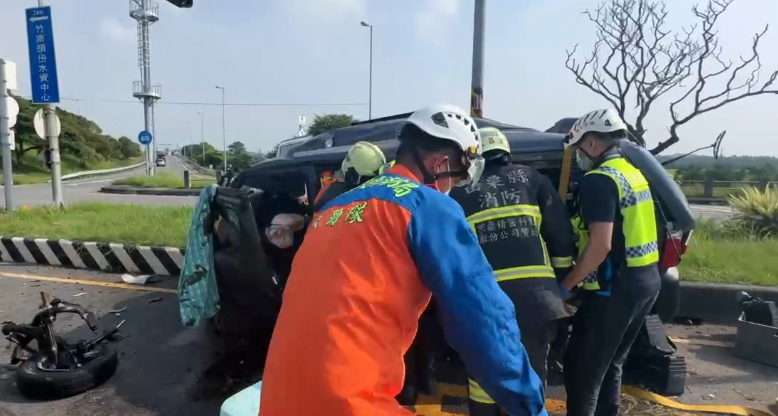 苗栗縣消防局指出,15時04分獲報,竹南鎮國道3號南下入口交流道台一己線發生事故,出動竹南分隊3車7人前往救援。抵達現場初步了解係轎車自撞電線杆導致翻車, 受困駕駛意識正常肢體無力,使用破壞器材及長背板協助脫困,給予包紮止血送為恭醫院。