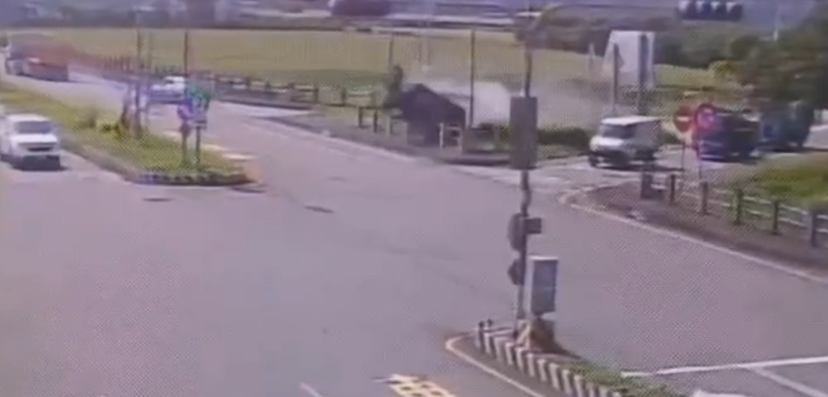 自小客車從國道3號竹南交流道一路撞擊翻滾翻覆省道台一己線。翻攝畫面