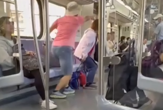 情緒失控的婦人不斷謾罵鄰座旅客還推對方。翻攝畫面