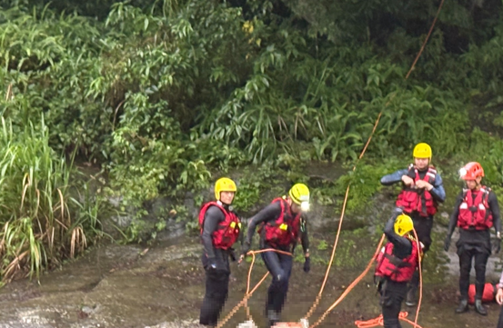 尖石分隊人員到場後目視發現,一名男性卡在溪中岩縫,僅見褲子與雙腳裸露,上半身沒入水中。17時54分消防人員著水域救生裝備架繩渡河至河道中央接觸患者,18時28分使用繩索、水上救生器材及捲式擔架將其搬運至岸邊。經查該名陳姓男子(64歲)身體浮腫,已明顯死亡,現場交由警方處理,本案共出勤6車、17名警消及義消1名。新竹縣政府消防局呼籲,連日大雨進入山區溪流活動請務必注意安全,並於行前告知親友行程及攜帶通訊裝備,以防意外發生。