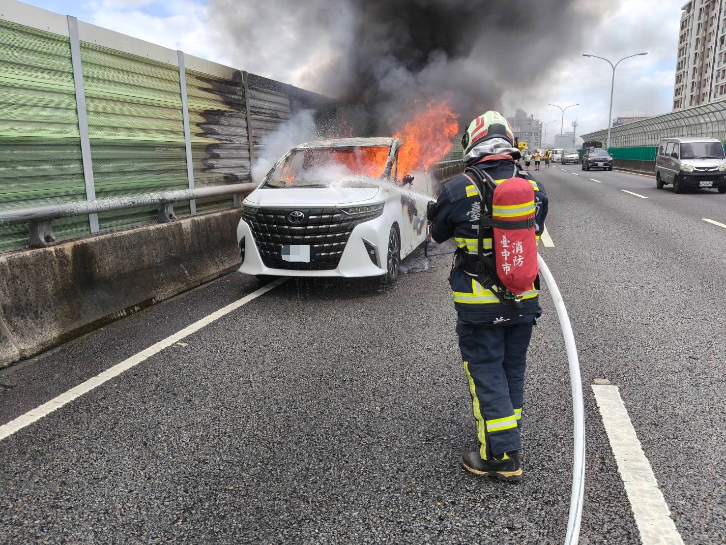 【賴傳媒、記者爆料網/周庭慶/台中報導】台74線今(15)日中午發生火燒車事故!現場煙沖天大老遠就可看到,有對向車道民眾駕車經過驚呼:「整台燒起來了!」,接著發現起火的是頂級休旅車「阿法」又是一陣驚呼。台中市消防局表示,12時4分獲報北屯區台74東向(往霧峰)23.5公里火警,消防隊人員及車輛12時12分到達現場,12時15分回報現場確認無人員受傷,火勢隨即控制撲滅,現場車輛為自小客油電車,起火原因及財損待查。
