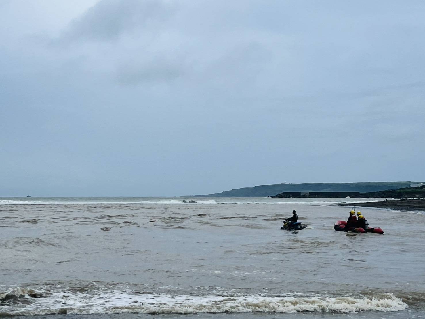 搜救人員在海中搜尋落水失蹤的男子。翻攝畫面