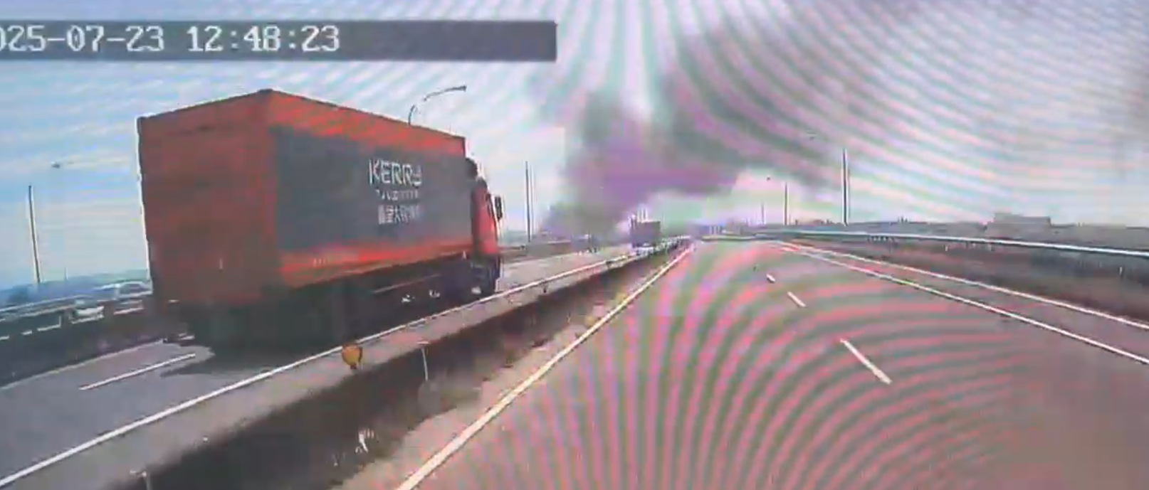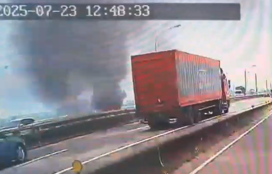 屏東萬大橋上小貨車起火冒出濃煙。翻攝畫面