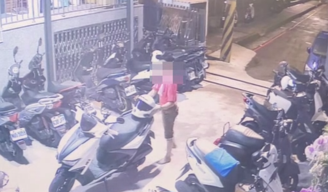 嫌犯偷走民眾置於機車座墊上的安全帽。翻攝畫面