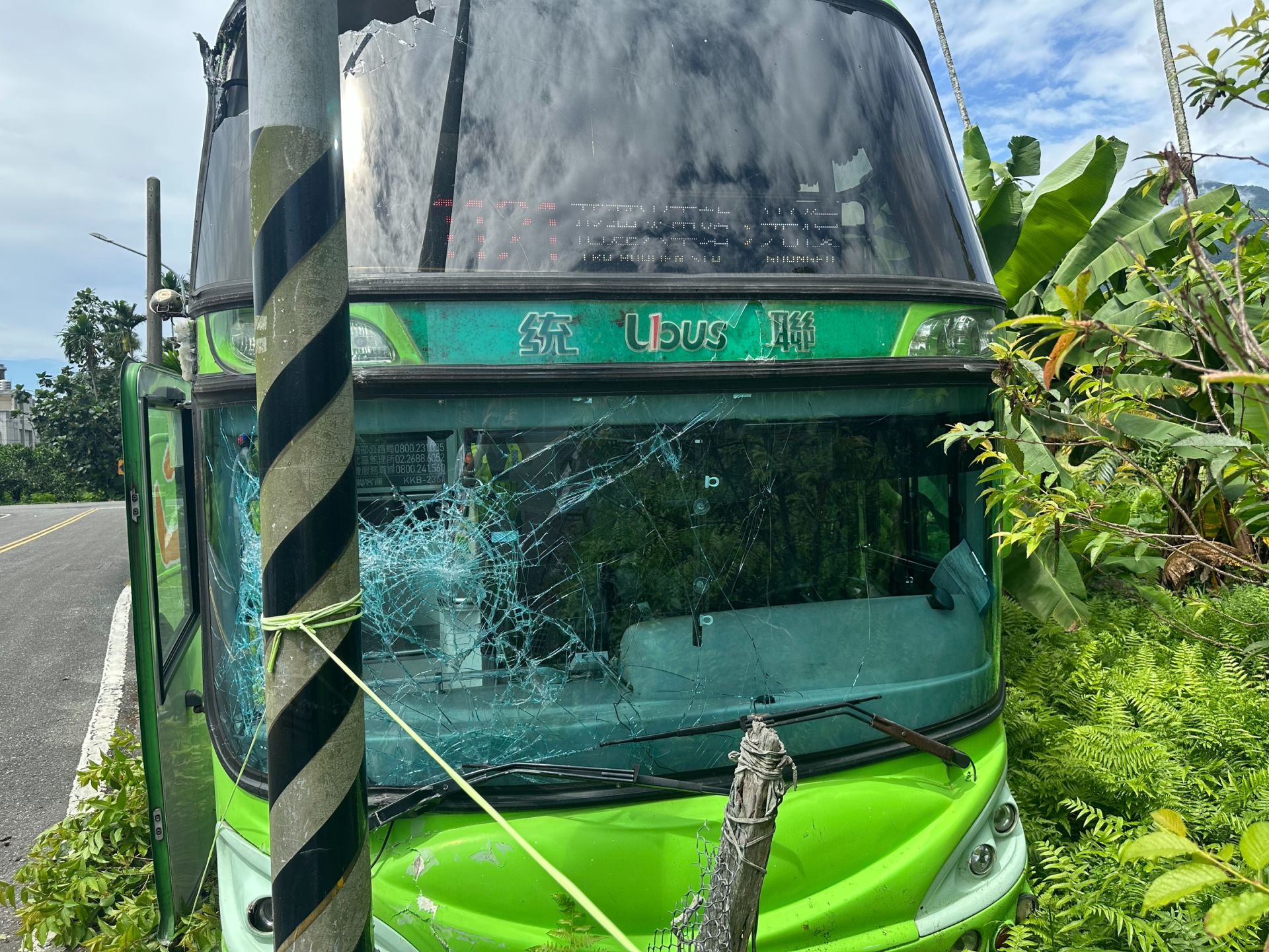 肇事逃逸統聯客運擋風玻璃碎裂。翻攝畫面
