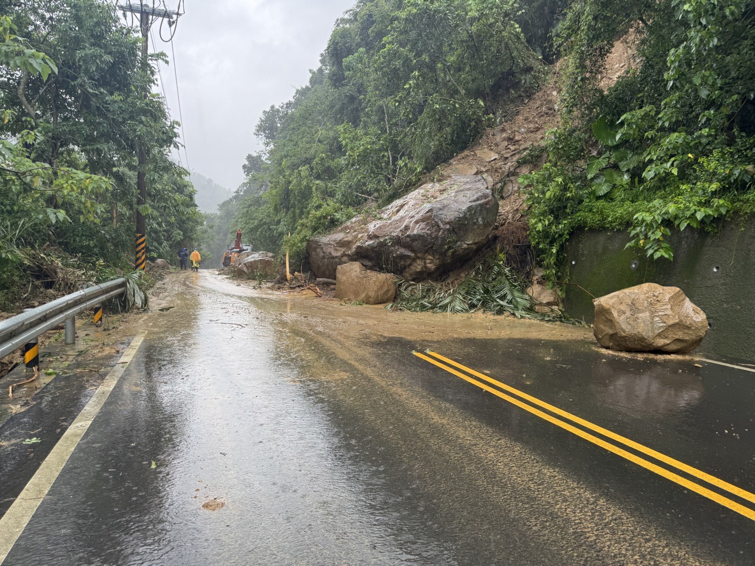 嘉義縣大埔鄉台3線326.5公里坍方巨石滑落擋在路中。翻攝畫面