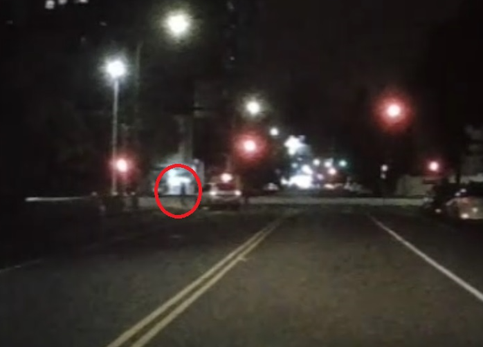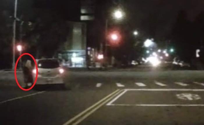 酒駕的尤姓男子發現警車跟在後頭,趕緊下車躲進旁邊公園(紅圈處)。翻攝畫面