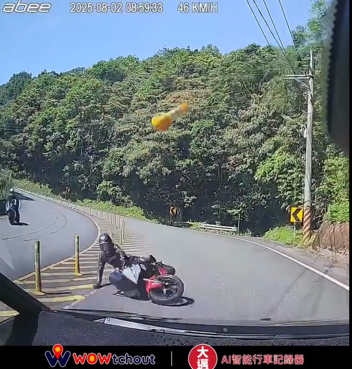 北宜公路「茶壺彎」重機過彎失控「噴飛」對向車道 騎士骨折送醫。翻攝畫面