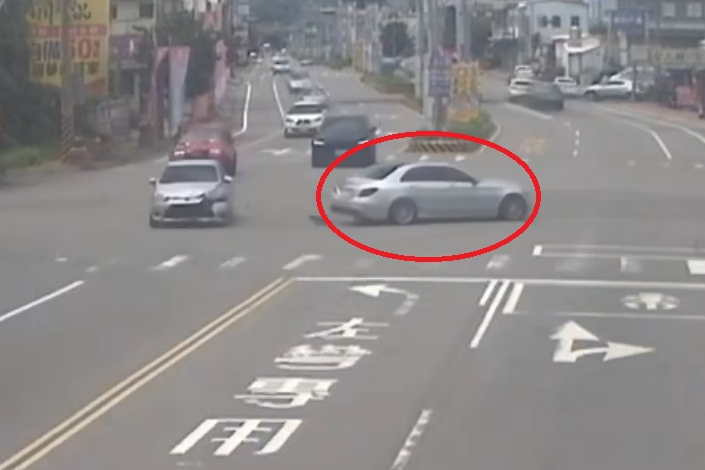 自小客車闖紅燈(紅圈處)釀車禍。翻攝畫面
