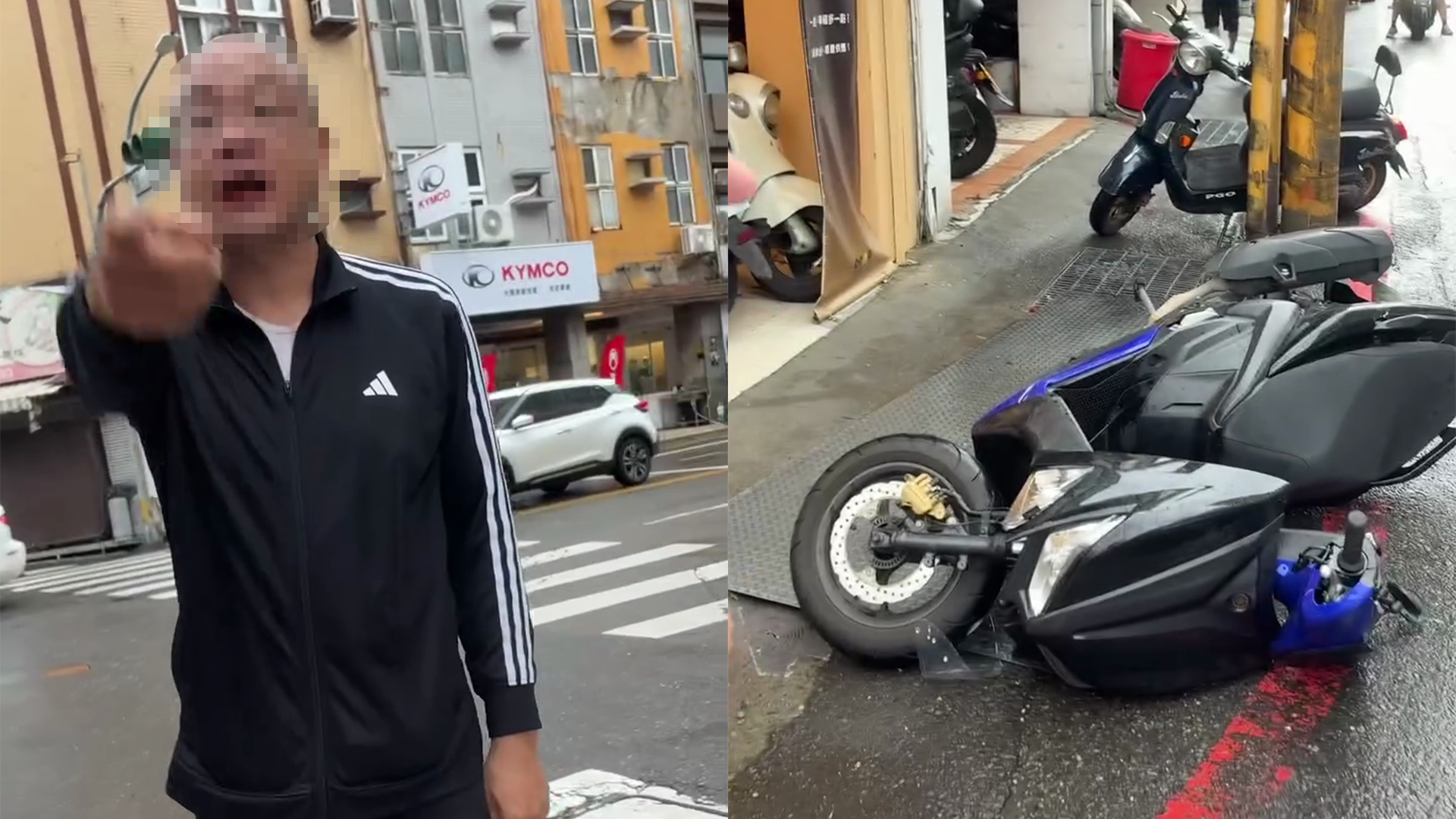 據了解,今天下午約3時許,兩名騎士在東區路上發生行車糾紛,41歲蔡男疑似不滿年輕騎士行車舉動,竟一路尾隨追到勝利路口,將對方攔下理論。未料雙方愈講愈火,先是爆發口角,接著41歲蔡男情緒失控,當場拿起安全帽朝對方機車猛砸,造成車身多處損傷。