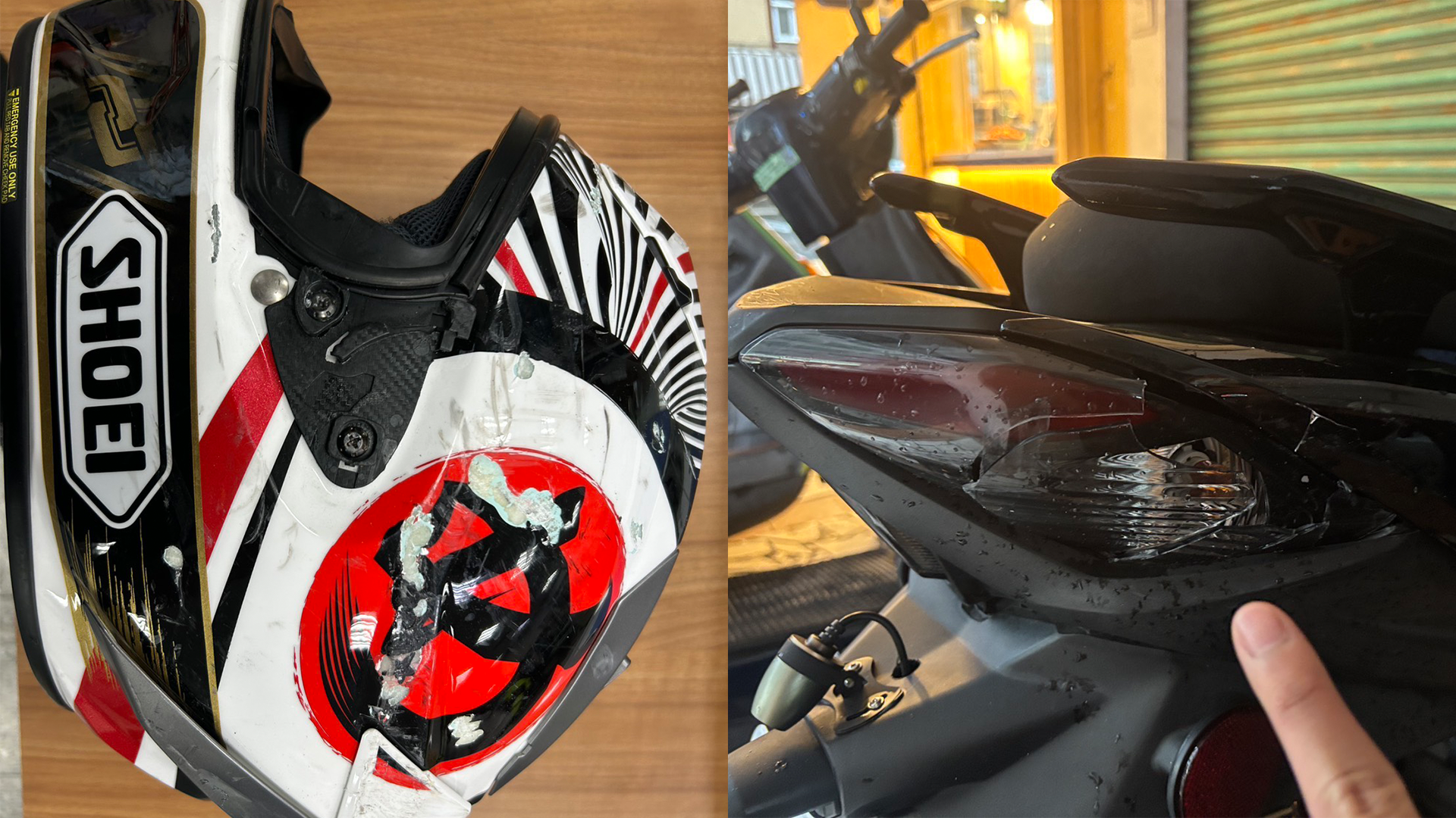 ▲騎士安全帽及車子都有受損(圖/記者王俊勝 翻攝)
