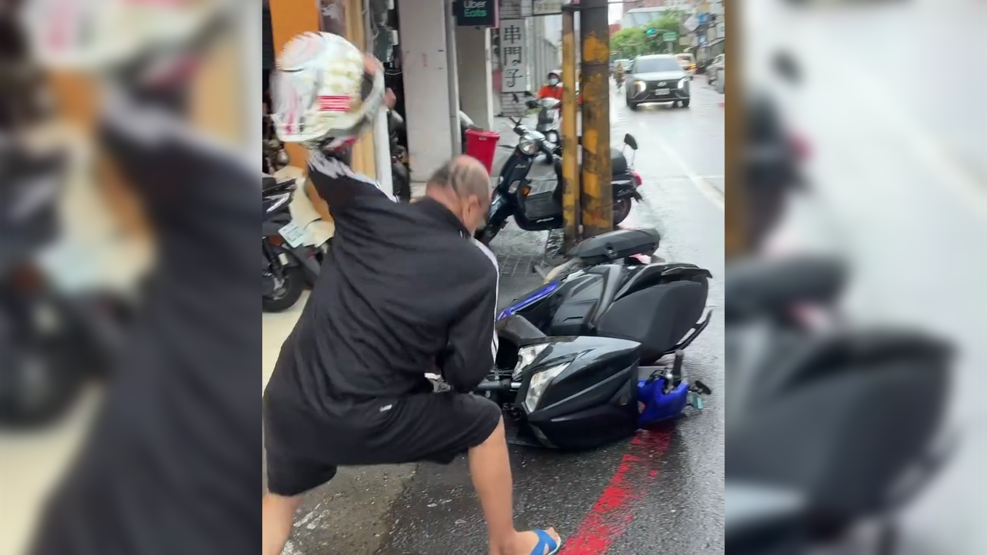 ▲叫囂男狂嗆騎士,拿東西怒砸機車(圖/Threads/_________2.3cm 授權;未經授權請勿翻攝)