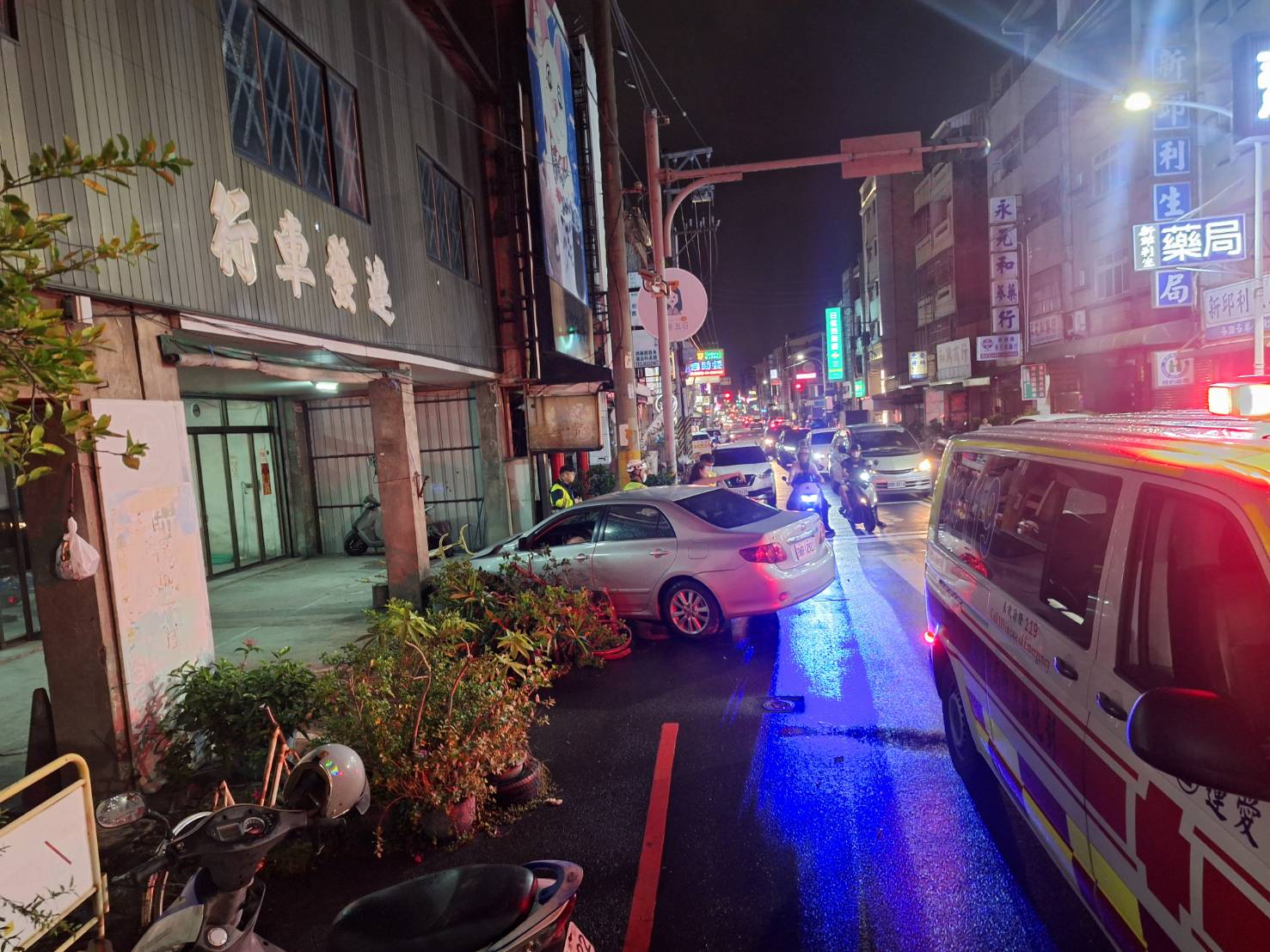 8月9日20時52分,員林分局莒光派出所獲報,員林市中山路一段646號前有交通事故,員警到場發現1輛自小客自撞車頭凹陷停放於該處,駕駛人張姓女子(40歲)現場向警方表示該車駕駛為渠本人並未受傷,且稍早有飲酒,警方現場確認張女已飲酒結束逾15分鐘,並提供乾淨礦泉水供她漱口。
