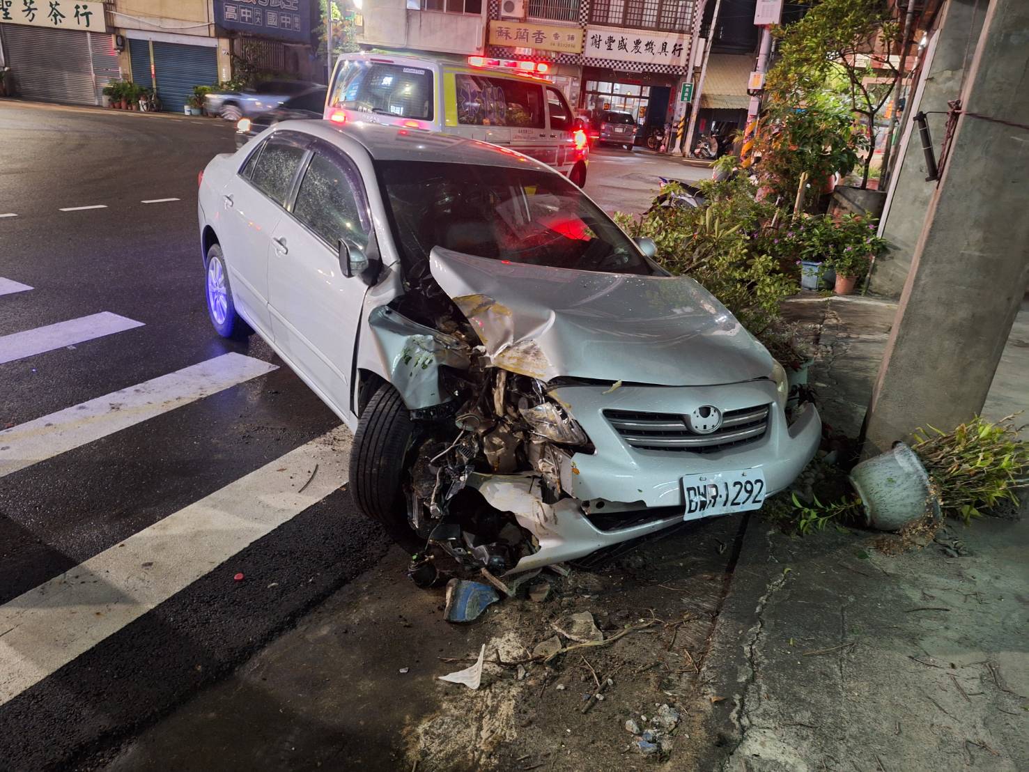 酒駕女子自小客車車頭毀損。翻攝畫面